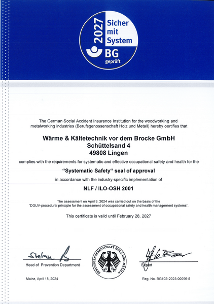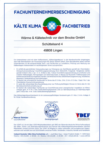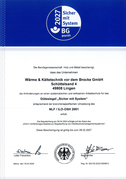 Zertifizierungen der Wärme- und Kältetechnik vor dem Brocke GmbH